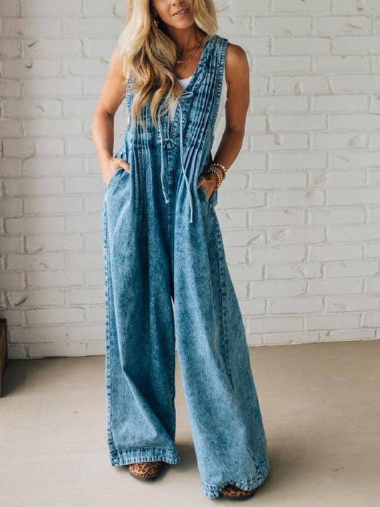 WOMENS ACID WASH PINTUCK JUMPSUIT (BUY 2 FREE SHIPPING)