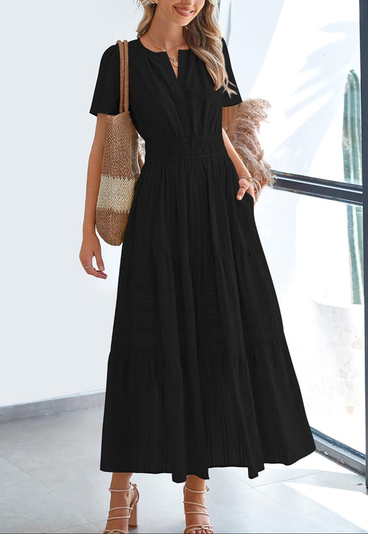 Womens Summer Lightweight Short Sleeve Midi Maxi Dresses(BUY 2 FREE SHIPPING)